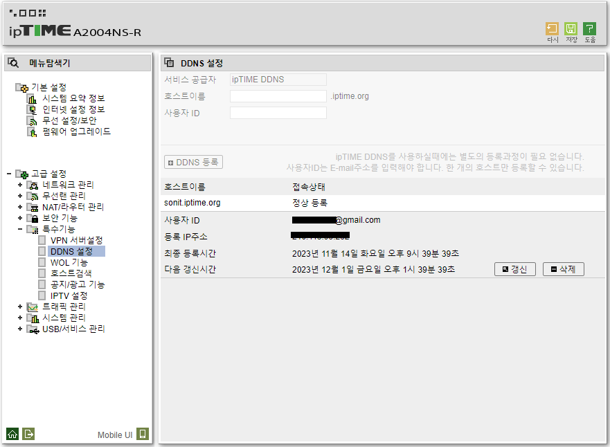 [그림 4] ipTIME DDNS 정상 등록 화면