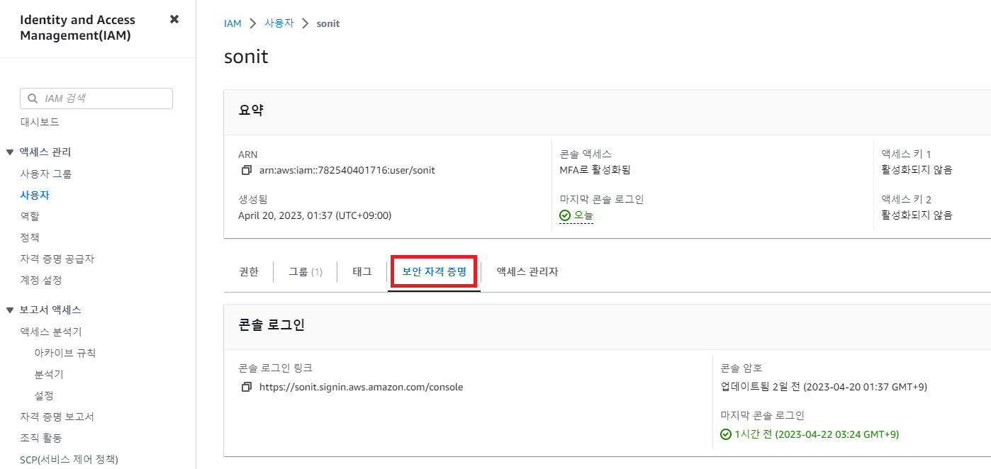 [그림 1] IAM 사용자의 보안 자격 증명 접근